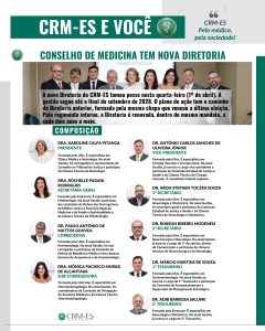 A Nova Diretoria do Conselho Regional de Medicina do Espírito Santo tomou posse no último dia 1º de abril. A Diretoria é o grupo de conselheiros responsável por administrar a autarquia, para garantir o cumprimento da ética médica, a fiscalização da profissão e a defesa da sociedade.